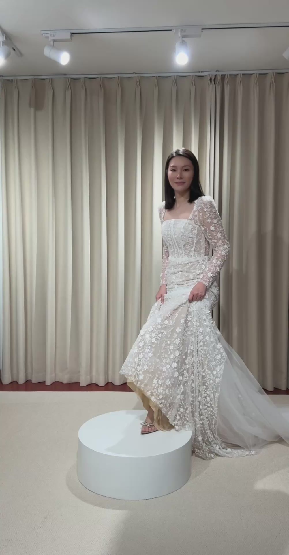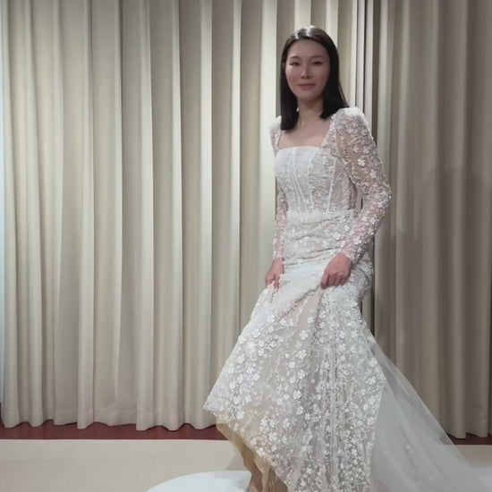 Jessica | Long sleeve corset mermaid wedding dress with 3D flowers, custom unique courthouse wedding dress, fairy elopement reception dress for bride